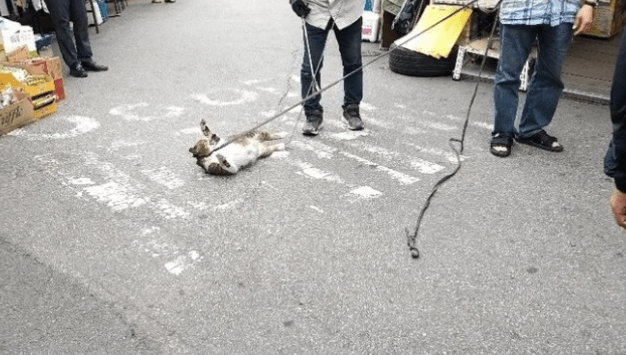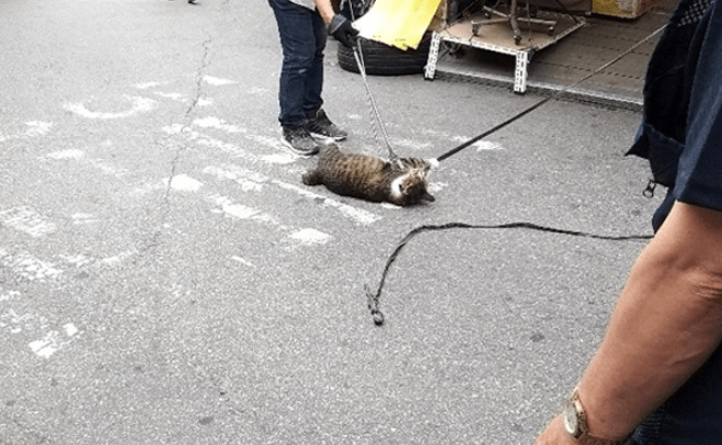 사건은 지난 12일 오후, 종로구 동묘시장에서 고양이가 매장에 들어왔다는 이유로 시장 상인이 고양이를 줄로 묶어서 목을 조르고