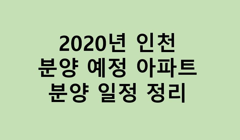 20년 인천 분양 아파트 , 분양 예정 단지 , 분양 일정 정리