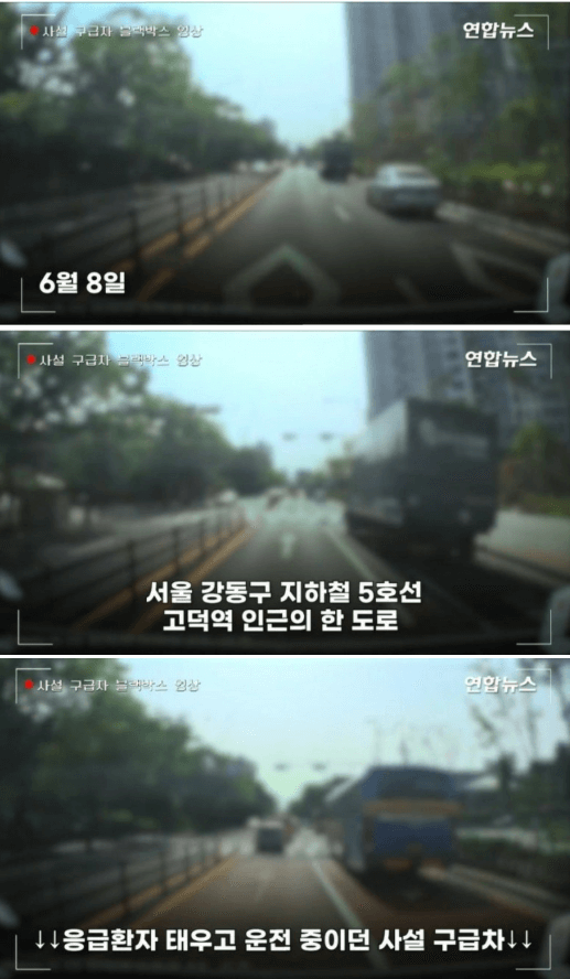김씨는 연합뉴스와의 통화에서 "폐암 4기 환자인 80세 어머님이 호흡에 어려움을 겪고, 통증을 호소해서 사설 구급차에 모시고 응급실로 가던 중이었다"며 "차선을 바꾸다가 택시와 가벼운 접촉사고가 났다"고 말했는데요.
