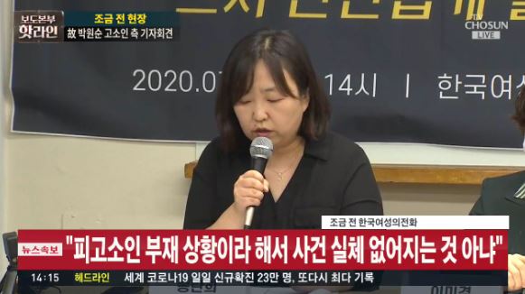 박 시장에 대한 고소인 측을 대변해서 나선 이 소장은 "이 사건은 전형적인 직장내 성추행 사건임에도 피고소인이 망인이되어서 공소권 없음으로