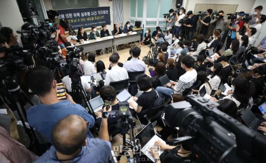 13일 오후 2시 서울 은평구 한국여성의전화에서 '서울시장에 의한 위력 성추행사건 기자회견'이 열렸고 한국성폭력상담소와 한국여성의전화가 기자회견을 주최했습니다.