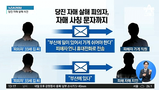 또한 남자친구는 언니의 가게 직원에게 여자친구(동생) 인 것처럼 문자를 보내 "가게 비밀번호를 알려달라"고 문자를 보냈다고 합니다.