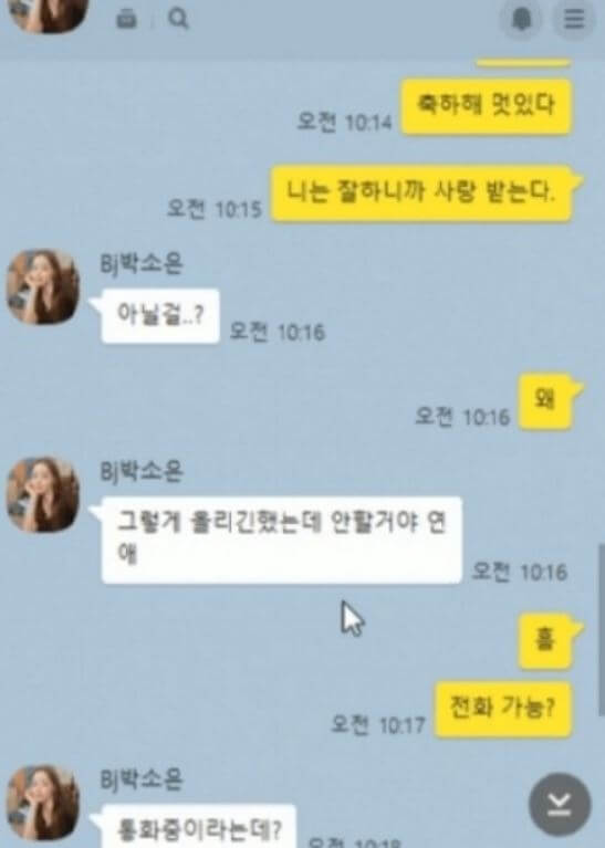 내용을 정리하면 박소은과 김인호는 사귀는 중이였다.