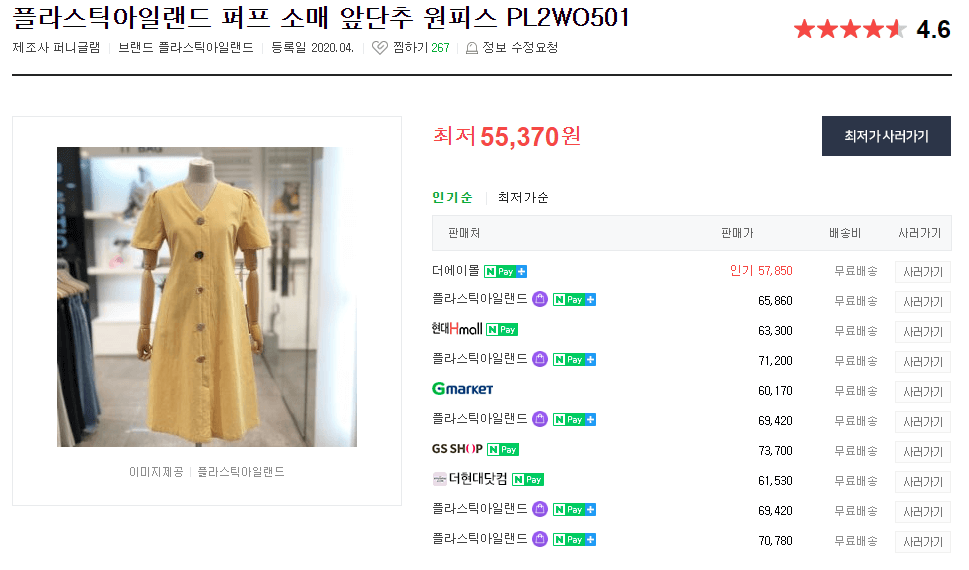 플라스틱아일랜드 퍼프 소매 앞단추 원피스 PL2WO501