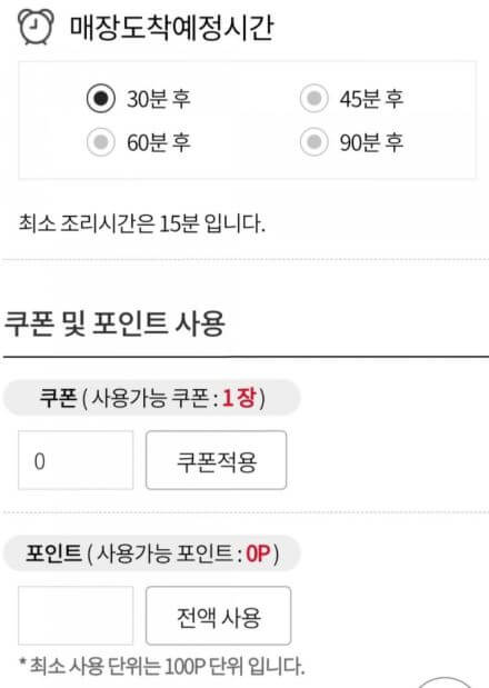 메인화면에서 주문유형을 선택 (포장인지 배달인지)