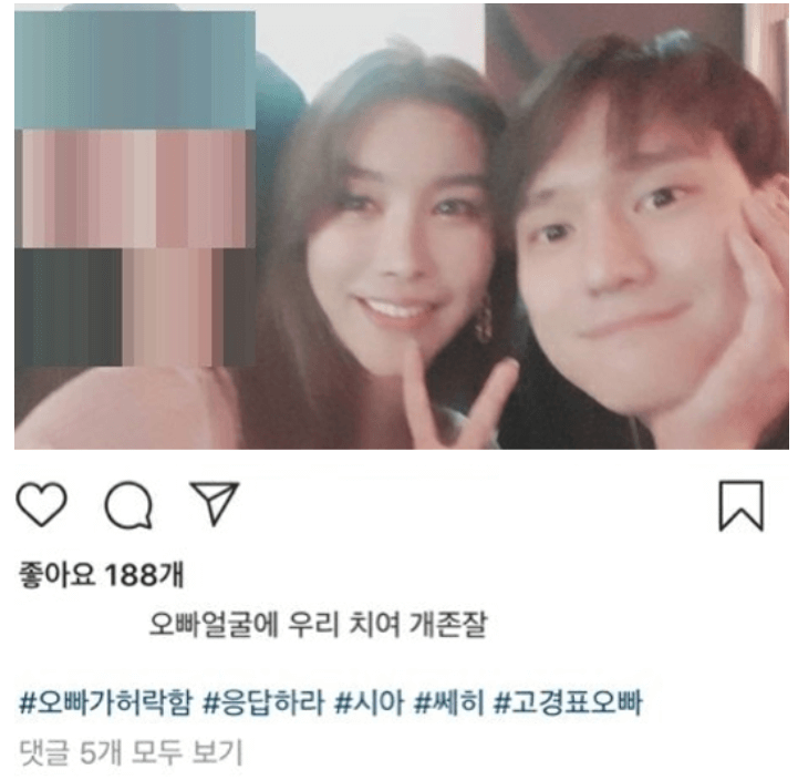 그 사진에서 게시물을 올린 여성은 "오빠 얼굴에 우리 치여", "오빠 취했어?" 등의 글과 함께 고경표와 함께 촬영한 사진을 게재했습니다.