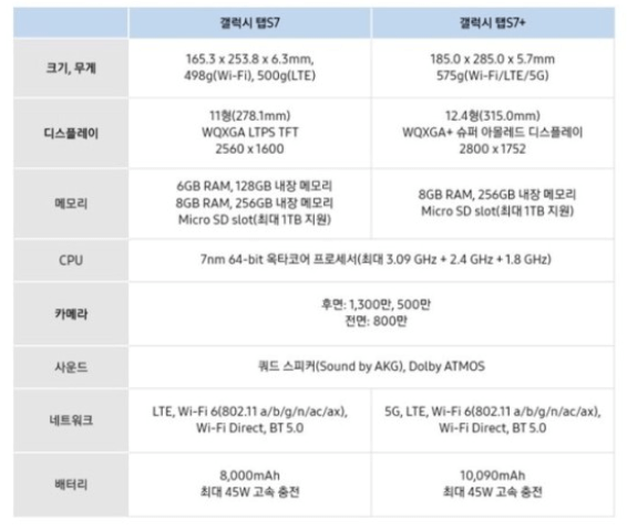 갤럭시 탭 S7 특징