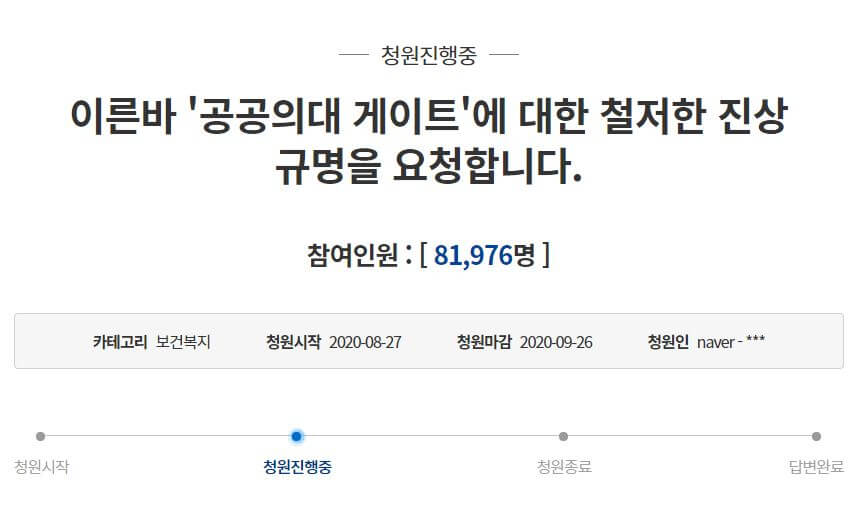 ▶ '공공의대 게이트'에 대한 철저한 진상규명을 요청합니다.' 청원에서는 "공공의대에 대한 정책이 과연 국민 건강을 위한 것인지" 물으면서