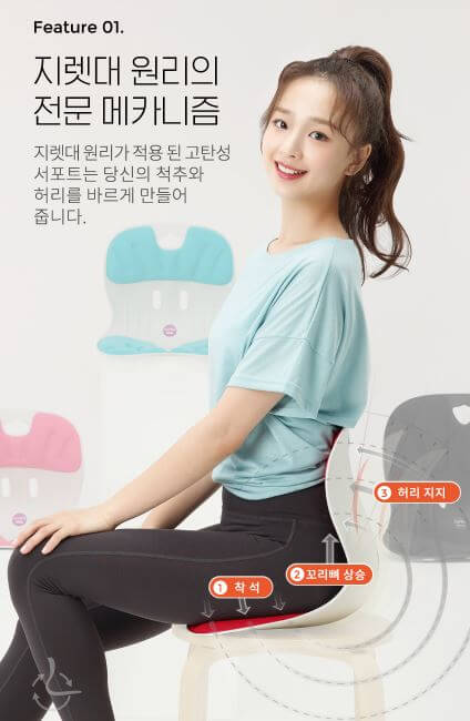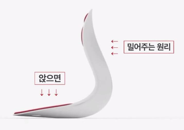 앉으면 뒤에서 밀어주는 지랫대의 원리로 척추교정, 허리교정 또한 가능합니다.