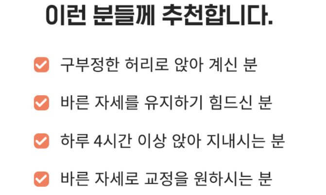 평소 잘못된 자세 때문에 목, 허리 통증을 호소하는 경우나 구부정한 자세로 인해 불폄함을 겪고 계신 분들의 경우 기능성 등받이 의자를 통해 자세교정의 효과를 기대해 볼 수 있습니다.
