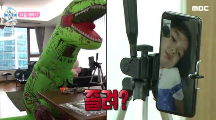 스테이크 요리와 먹방에 이어서 공룡 탈을 쓰며 조카와 영상통화를 하는 등 조카바보 면모를 보여주는데 가식없고 순수한 모습이 참 보기 좋네요.