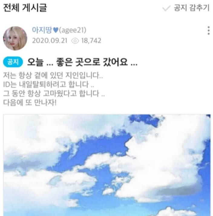 해당 글에선 "저는 항상 곁에 있던 지인이다. ID는 내일 탈퇴 하려고 한다.