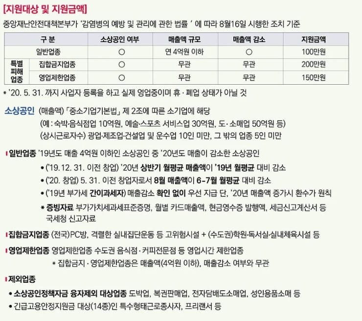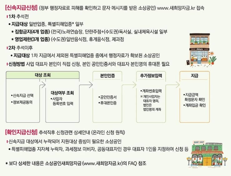 지급대상 : 1차 지급에서 제외된 특별 피해 업종 중에서 행정 자료가 확보된 소상공인