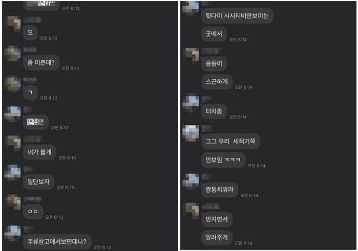 여성의 사진을 확인한 이들은 "주류창고에서 면접을 보자"라며 "뒤에 CCTV 안 보이는 곳에서 엉덩이 스근하게 터치좀"이라고 말했습니다.