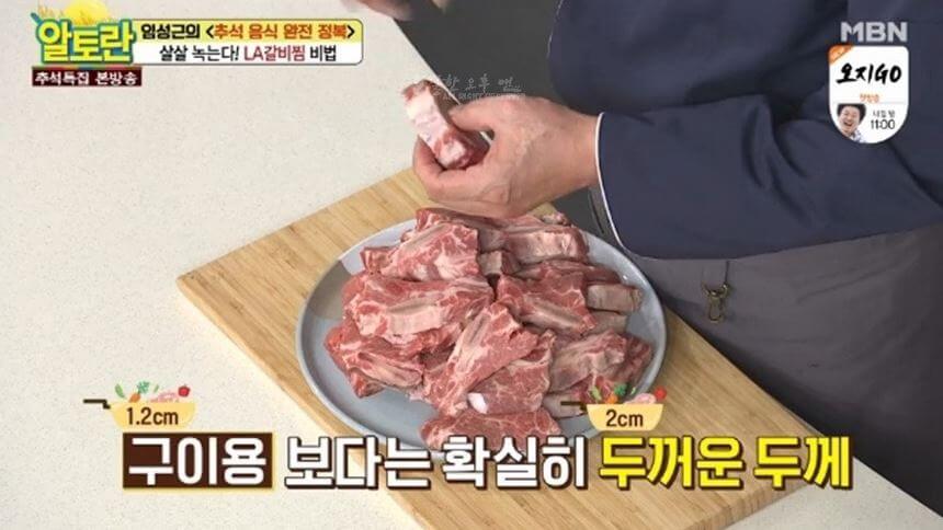 LA갈비 최적 두께는 1.2㎝이기 때문에 이 두께로 준비하셔야 합니다.
