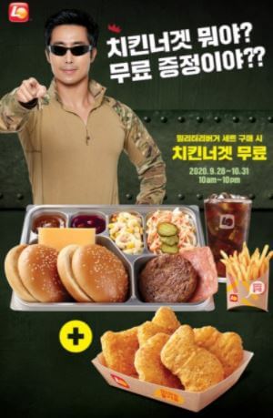 또 오프라인 매장에서는 10월 말까지 밀리터리버거 세트 구매 때 치킨너겟 증정 이벤트와 함께 롯데리아 카카오톡 플러스 친구 등록 고객에게는