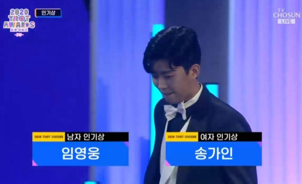 가수 임영웅 , 송가인이 ‘2020 트롯 어워즈’ 남녀 신인상을 수상하는 영광을 누렸습니다.