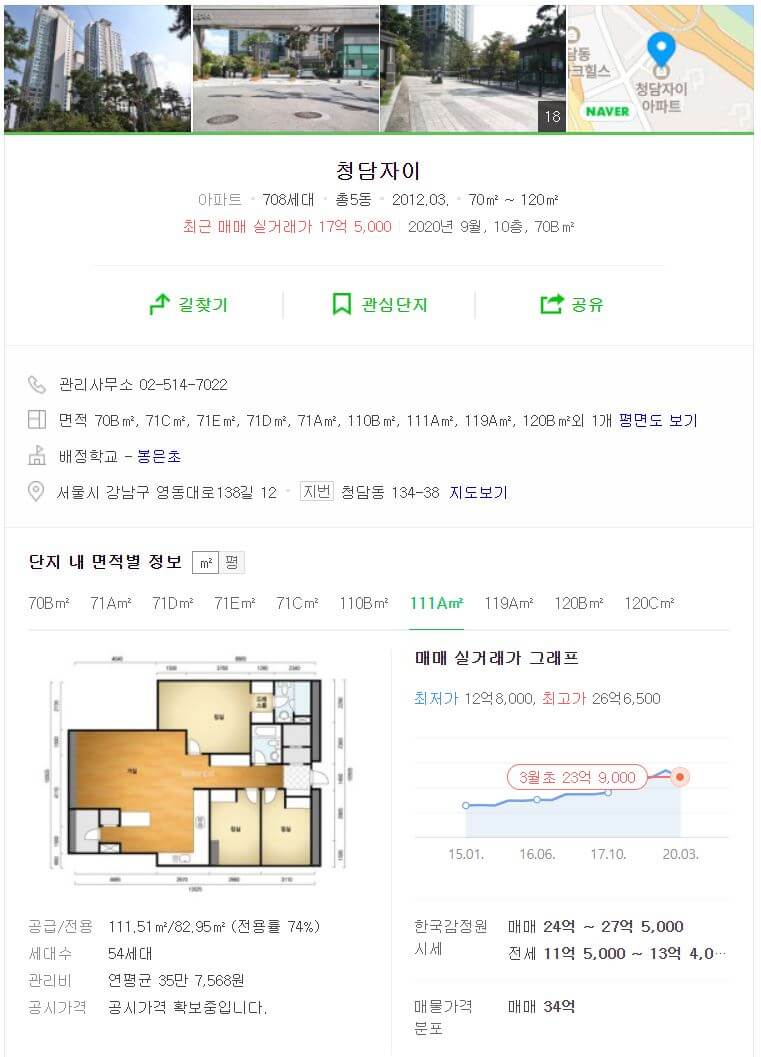 하석진 집 위치 청담동 자이 아파트 시세 얼마?