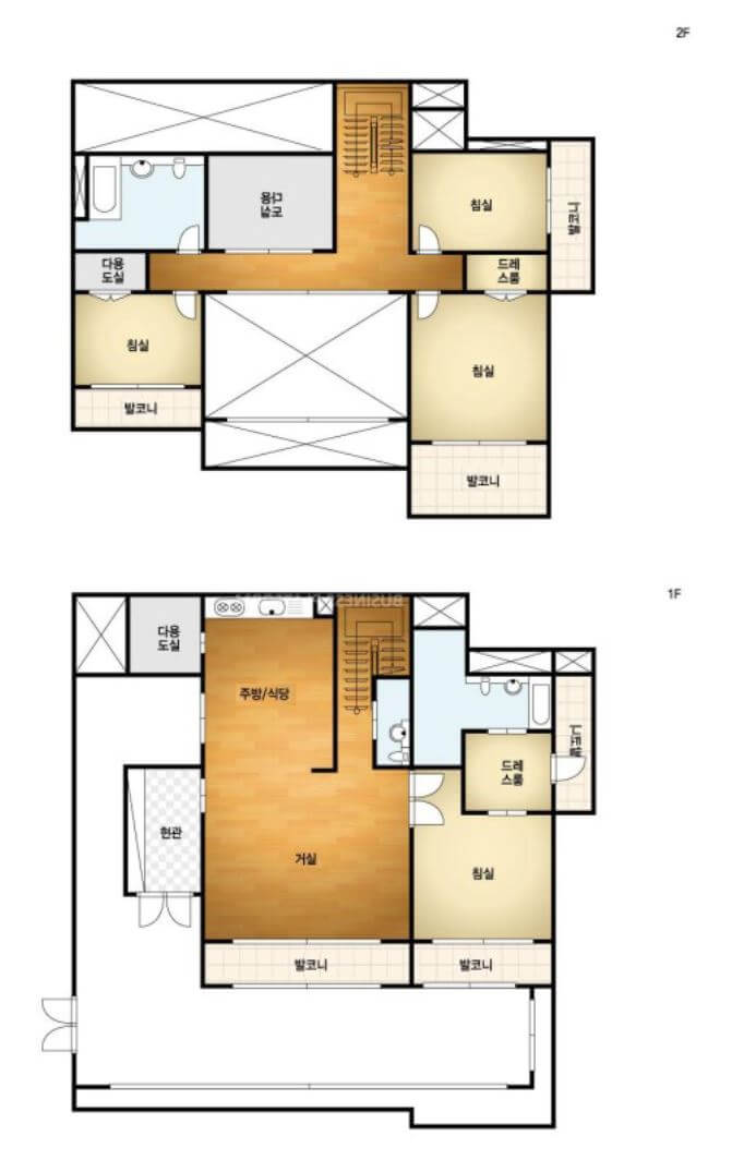 평수로 따지면 약 85평의 초대형 평수로 1층에 화장실 2개, 방1개가 있고 2층에 방3개 화장실 1개가 있는 구조입니다.
