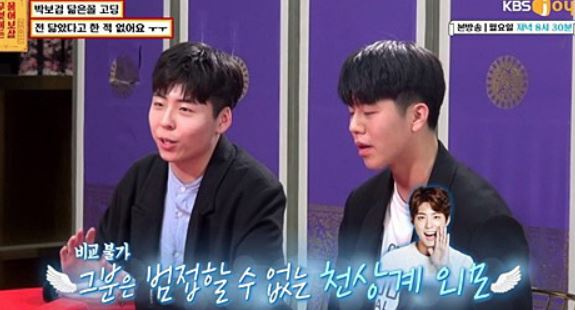 이날 방송에서 김군은 "박보검 때문에 억울하다"고 털어놓았다. "SNS에서 박보검을 닮았다고 하는데 나와 천지차이"라며 "박보검이 화제가 될 때마다 닮은꼴이라면서 많은 분들이 내 SNS를 찾아온다. 사실 그렇게 닮지 않았다. 내가 사진을 좀 잘 찍는 것뿐"이라고 설명했다.