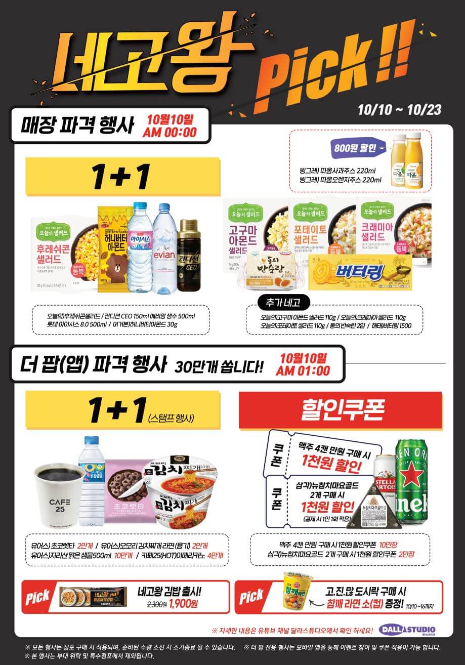 매장에서 행사 판매하는 제품들과, 온라인 어플로 쿠폰을 받을 수 있는 제품들이 나눠져 있으니, 잘 확인하셔야 혜택을 빠짐없이 누릴 수 있습니다.
