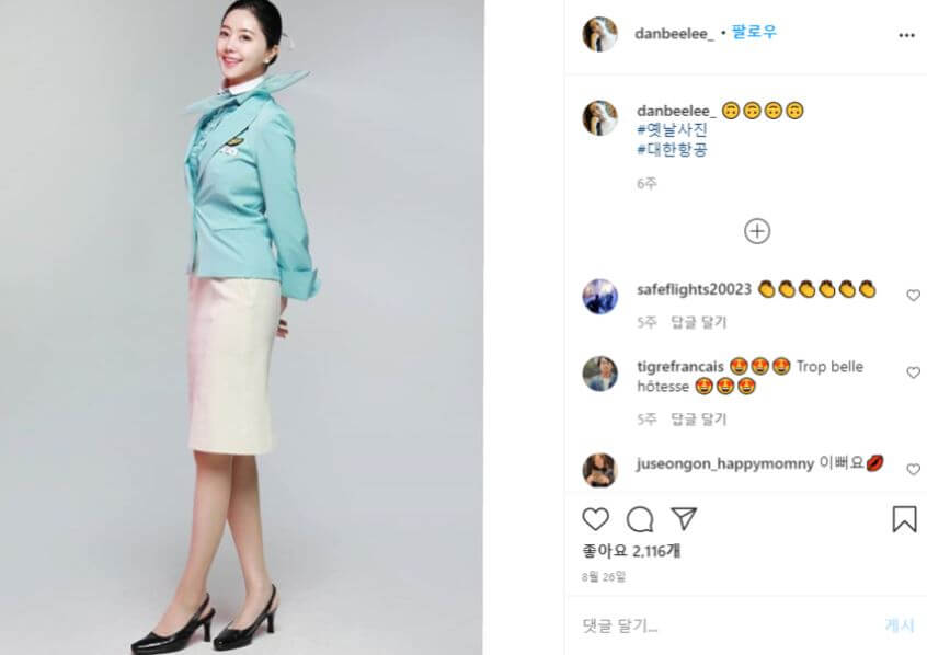 아나운서가 되기 전 직업으로 대한항공 승무원으로 일한 경력이 있다고 합니다.