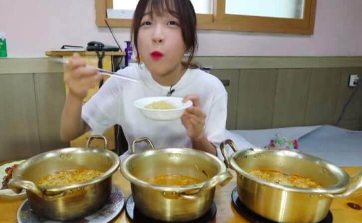 라면 3개에, 김밥 4줄까지 ‘올 킬’한 쯔양은 “라면 2개를 더 달라”고 주문해 놀라움을 주위를 놀라게 했고 결국 라면 5개에, 김밥 4개, 그리고 공깃밥 한 그릇까지 먹은 그녀는 “아쉽지만 여기까지 먹도록 하겠다”고 말했습니다.