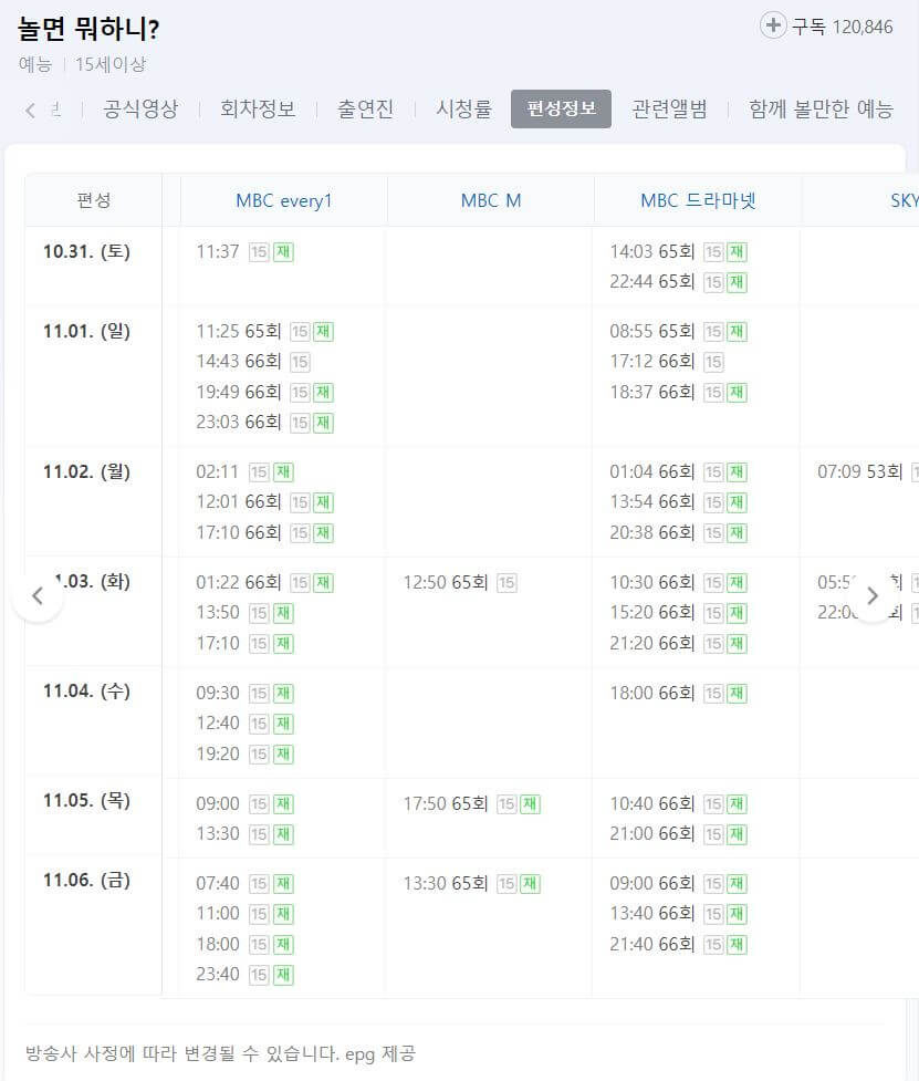 방송사별로 다르기 때문에 편성표 확인하시어 시청하시면 됩니다.