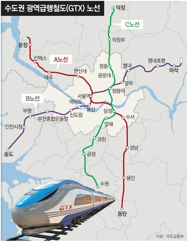 GTX 통합 환승센터 건설 예정 지역