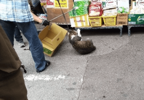 사건은 지난 12일 오후, 종로구 동묘시장에서 고양이가 매장에 들어왔다는 이유로 시장 상인이 고양이를 줄로 묶어서 목을 조르고