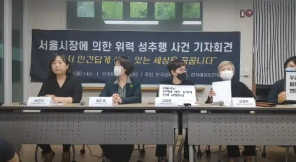 13일 오후 2시 서울 은평구 한국여성의전화에서 '서울시장에 의한 위력 성추행사건 기자회견'이 열렸고 한국성폭력상담소와 한국여성의전화가 기자회견을 주최했습니다.