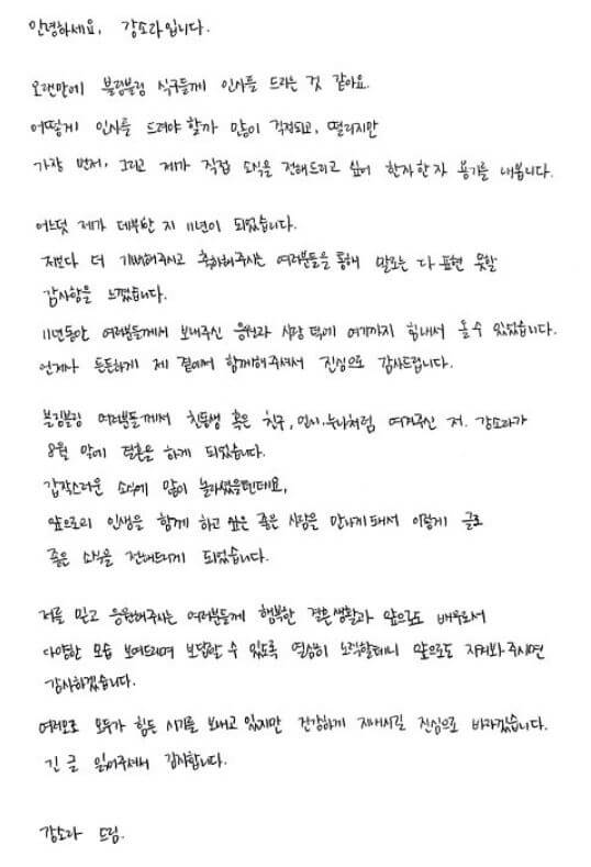 결혼 소식도 직접 적은 손편지로 올리고 팬들을 생각하는 마음이 진정성 있어보여서 참 좋네요.