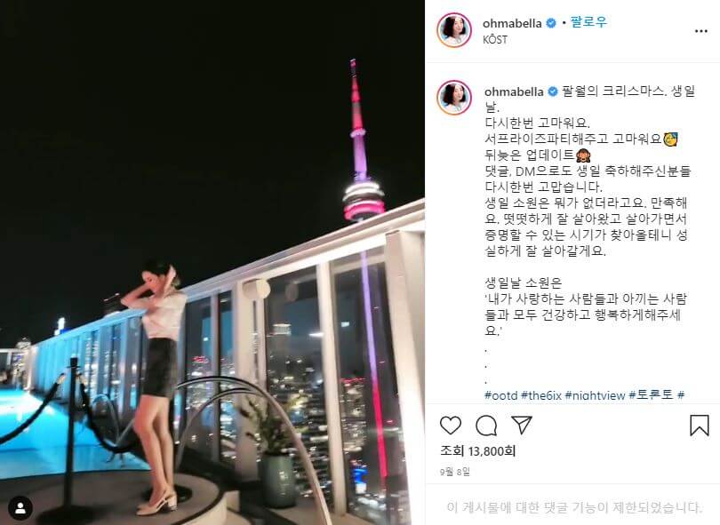 게다가 그의 뒤로는 토론토 CN 타워도 보였고 윤지오 씨는 영상과 함께 “생일날 서프라이즈 파티해줘 고마워요”라고 인스타그램에 메세지를 적었습니다.