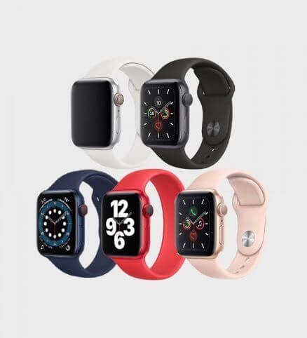 애플워치 6세대는 44mm와 40mm 크기로 출시되며, 알루미늄(실버/그레이/골드/블루/레드), 스테인리스스틸(실버/그래파이트/골드), 티타늄(기본/스페이스 블랙) 등 재질과 컬러로 출시됩니다.