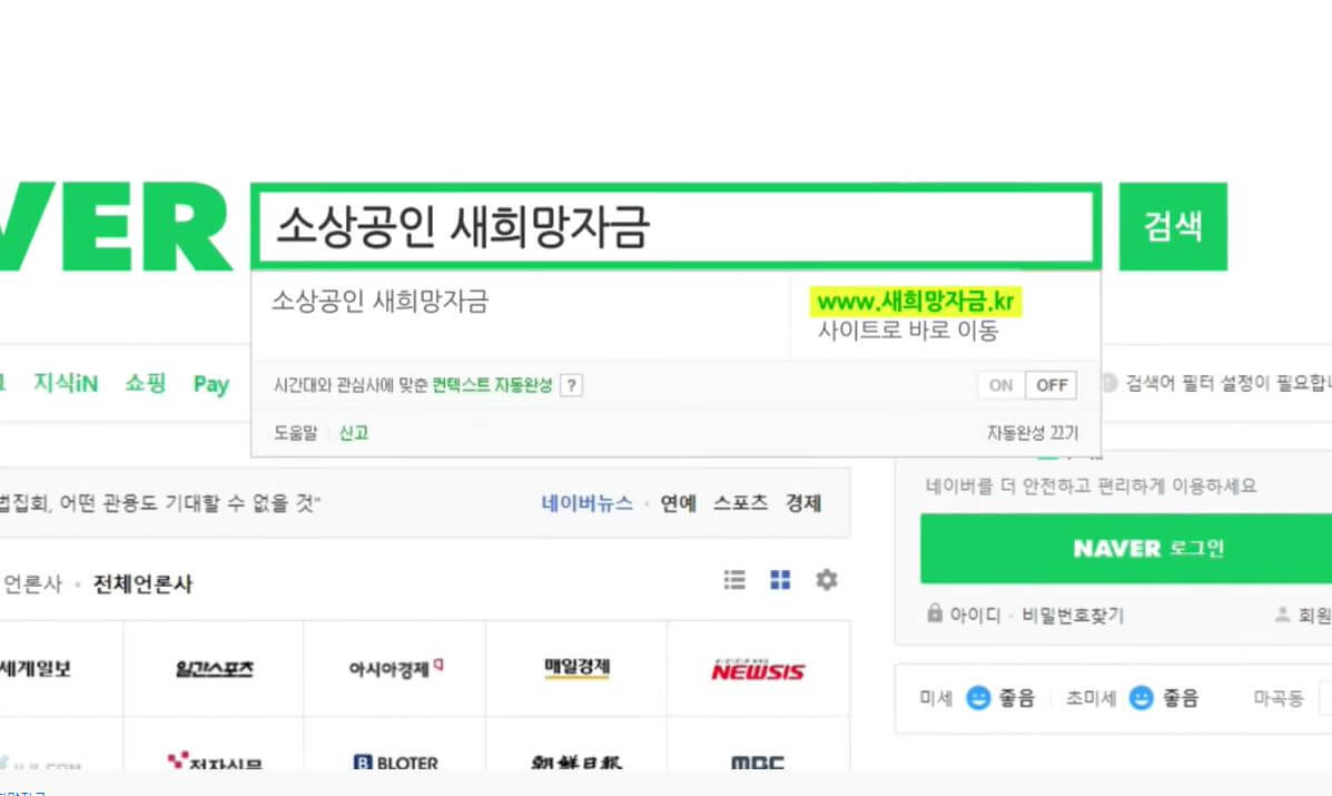 소상공인 새희망자금 진행 방법 영상