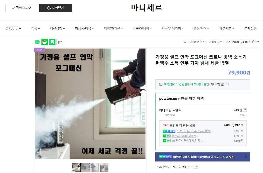그래서 오늘은 가정에서 셀프 로 할 수 있는 소독기 포그머신 에 대해서 소개 드리도록 하겠습니다.