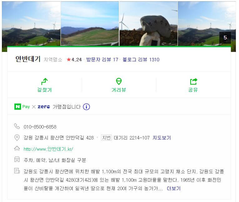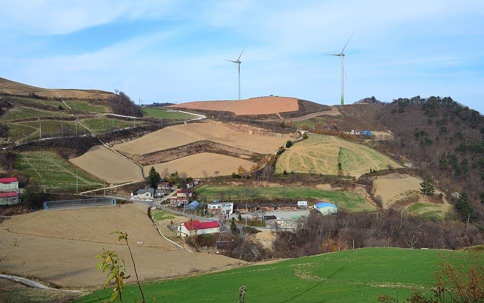 전국 최대 규모의 고랭지채소 단지가 조성되어 있으며 바람이 많아 풍력 발전기가 설치되어 있습니다.
