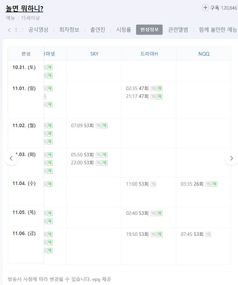 방송사별로 다르기 때문에 편성표 확인하시어 시청하시면 됩니다.