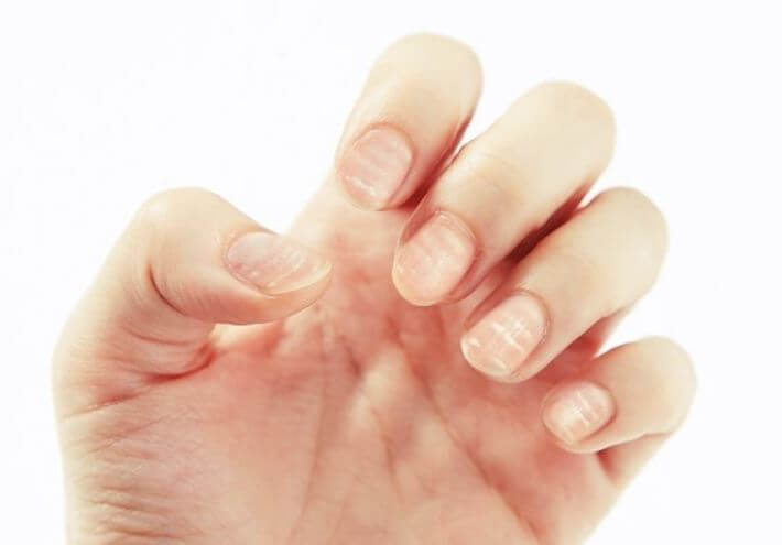 손톱은 단백질 덩어리라고 봐도 무방한데 단백질 섭취가 부족해지면 손톱에 세로줄이 생길 수 있습니다.