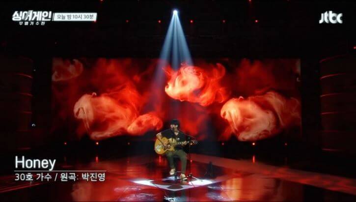 11월 23일 방송된 JTBC '싱어게인'에 등장한 30호 가수 이승윤은 박진영의 노래 '허니'를 열창했습니다.